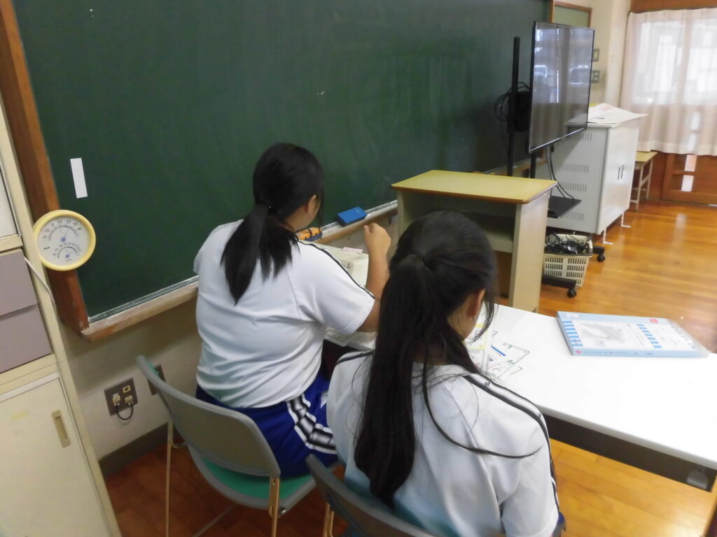 射北中学校から14歳の挑戦に2名の生徒が来てくれました。2名は本校の卒業生です。様々な場所の掃除や教材づくり、とねりこオリエンテーリングでの補助等、たくさんの仕事を体験しました。