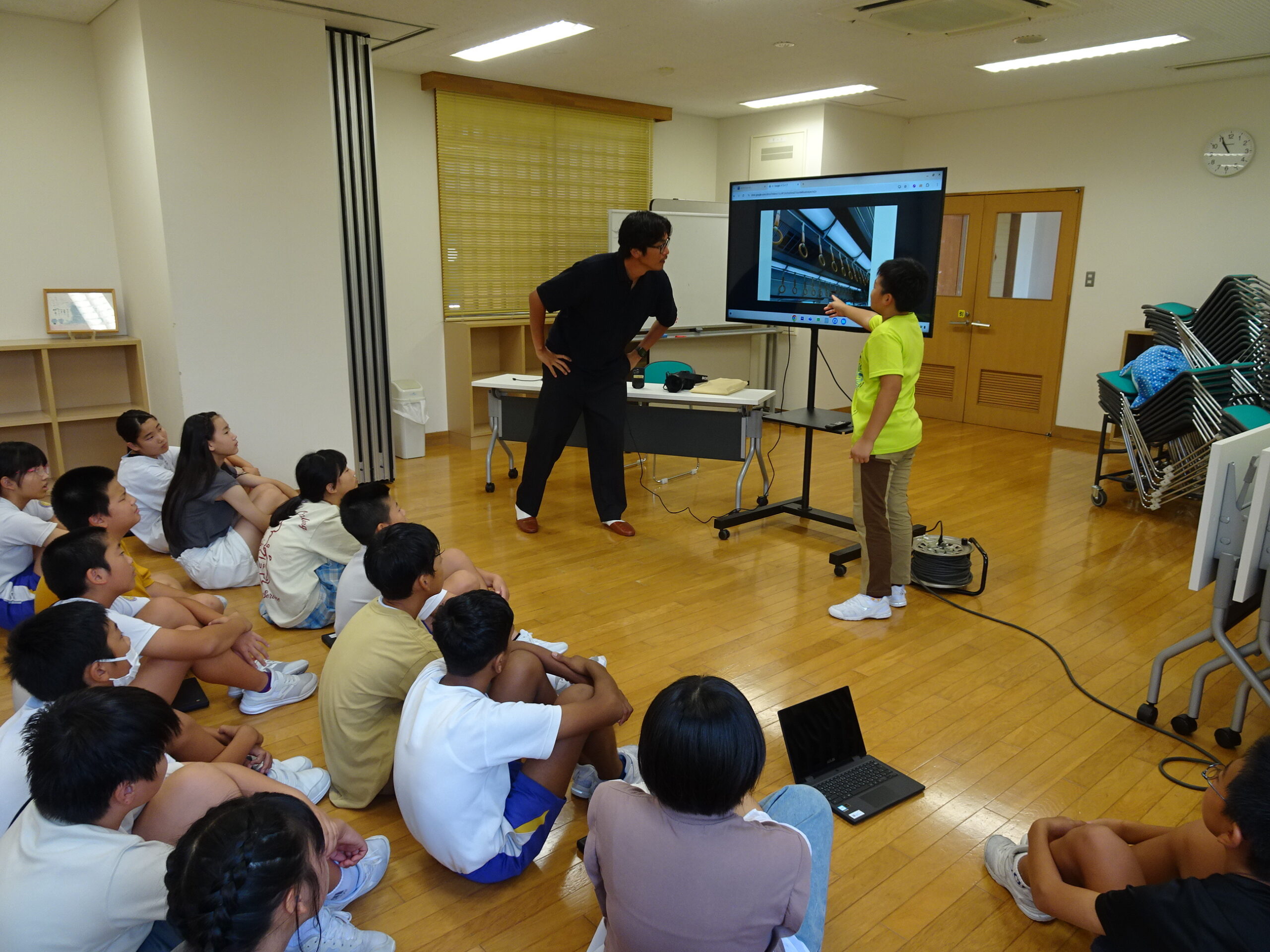 射水市在住の写真家 イナガキ ヤストさんに再び来校いただき、5・6年生は、イナガキさんとワークショップを行いました。被写体をアップで撮ったり構図を工夫したりするなど、撮影のコツを教えていただき、その後実際に自分たちで写真を撮影しました。撮った写真を全員で鑑賞し、アドバイスをいただきました。