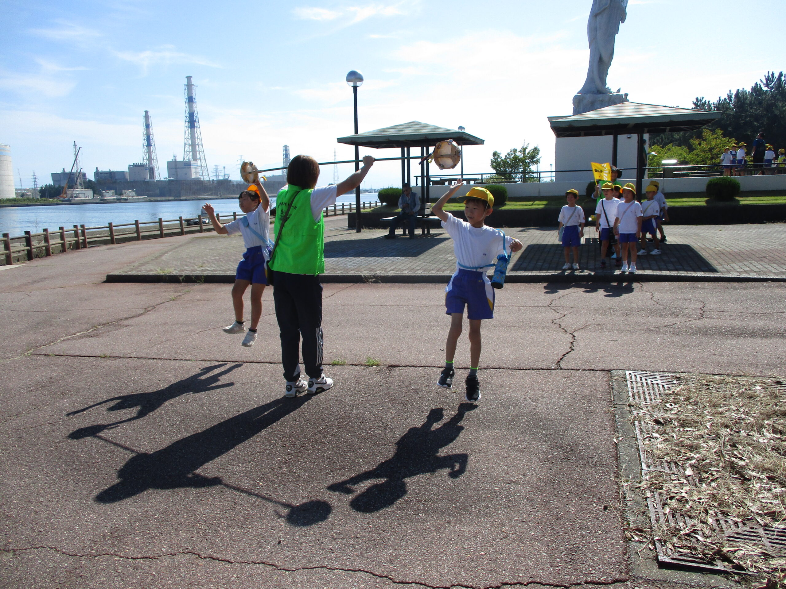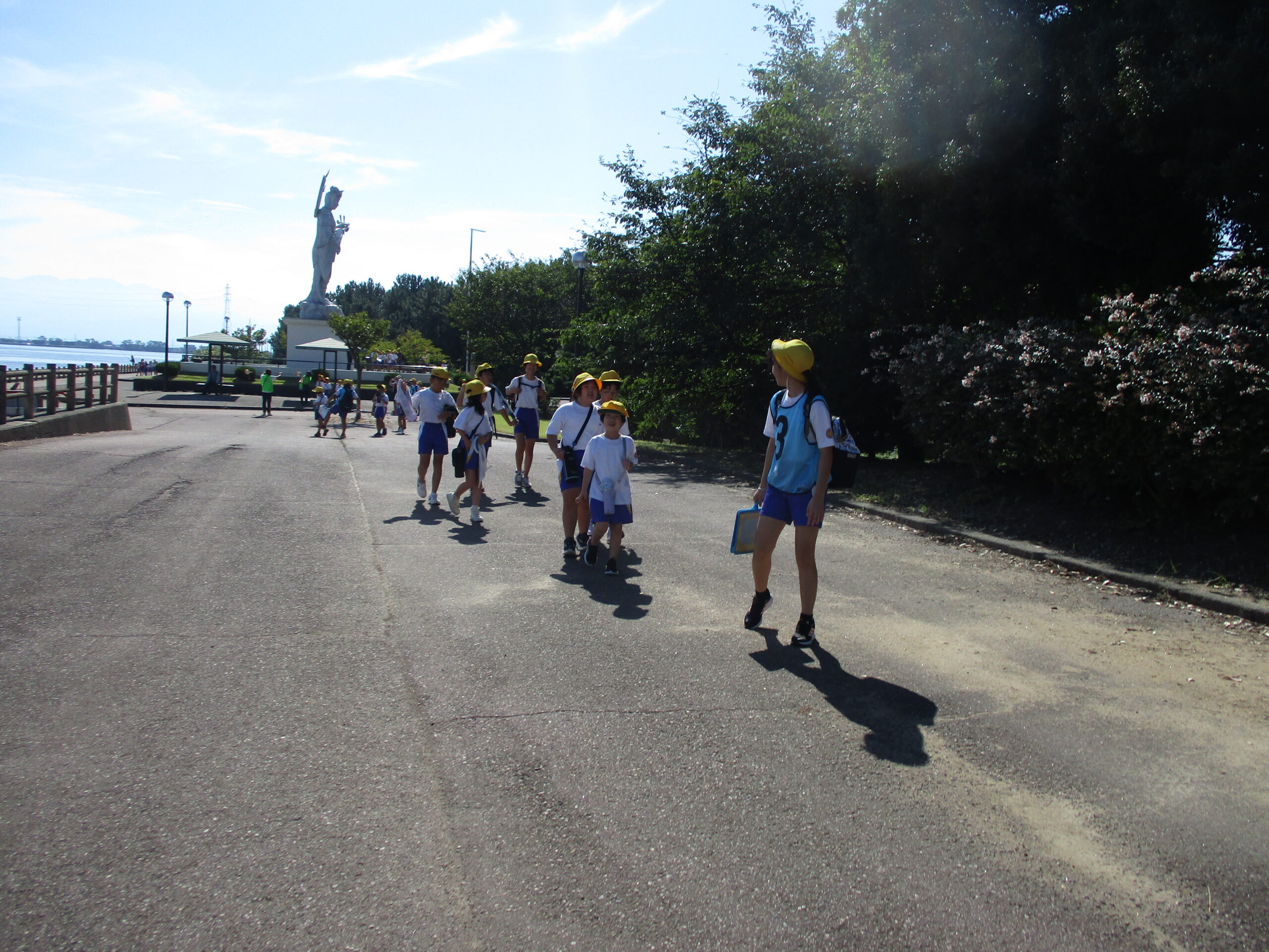 秋晴れのもと、とねりこオリエンテーリングを実施しました。縦割り班のメンバーと一緒に富山新湊展望台を目指して歩きました。地域のお店や神社、弁財天の像等を巡りながら、チェックポイントでのクイズにも取り組みました。「もう少しだよ」「がんばろう」と上学年から優しい言葉をかける姿がみられました。自由時間にはメンバーと遊び、より仲を深めることができました。安全に歩くことができるように、地域のボランティアの皆さんにも参加していただきました。ご協力ありがとうございました。
