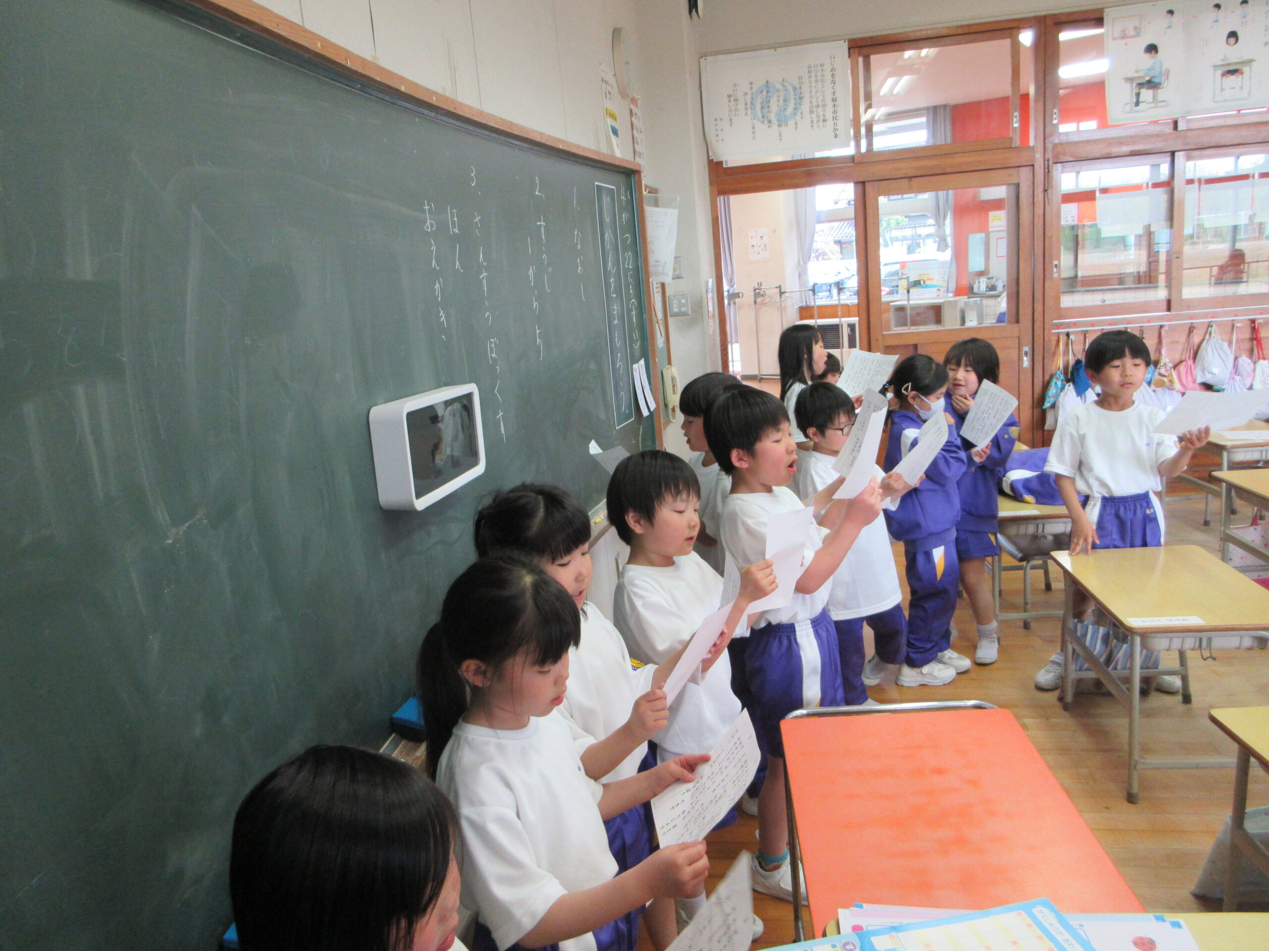 子供たちは、片口小学校の一員として上手に校歌を歌えるようになりたいと意気込んでいます。