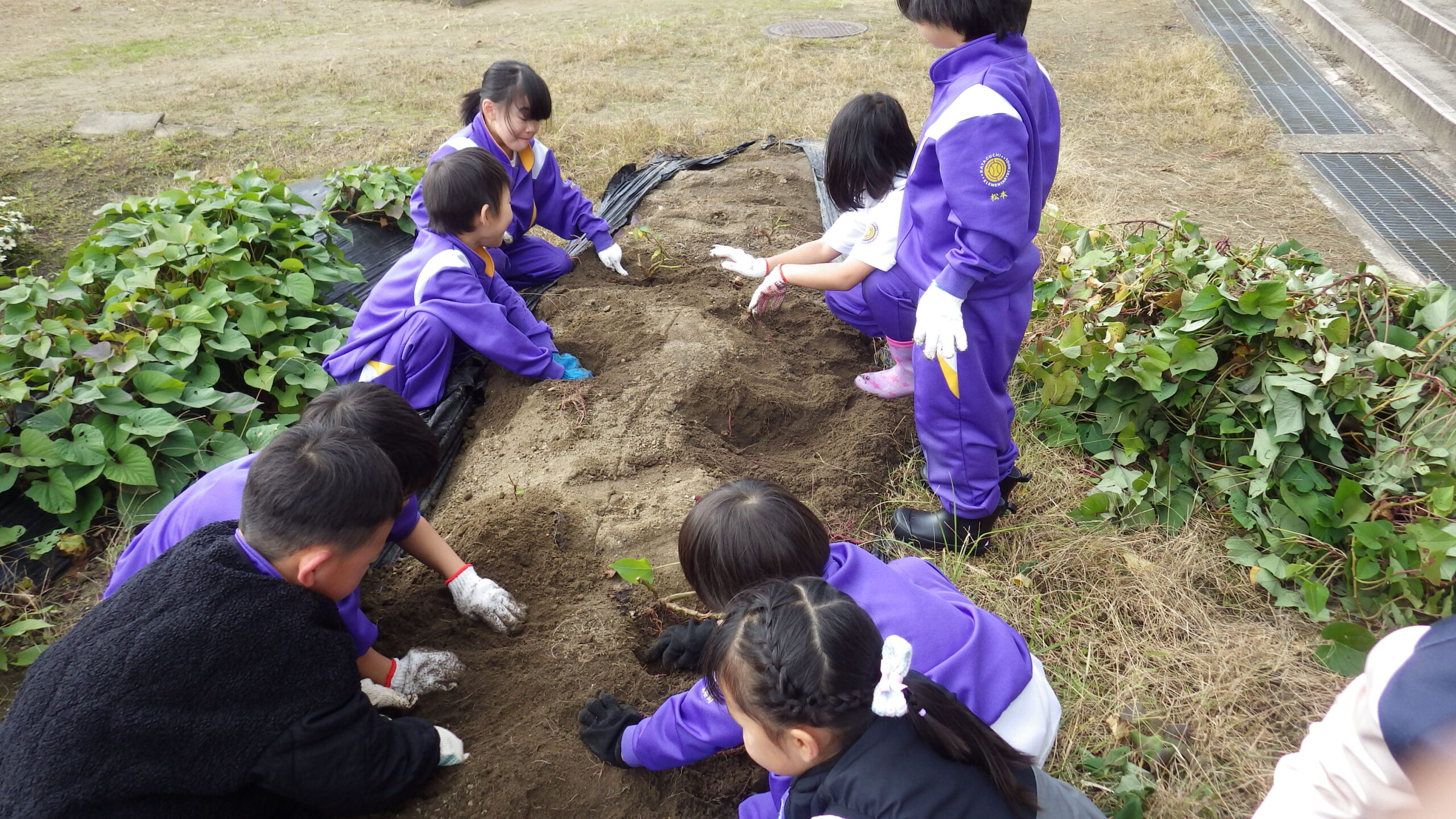 11月14日に、さつまいも掘りを行いました。今年は大変暑い夏で、さつまいもの成長が心配でした。しかし、子供たちが掘ってみると、とても大きなさつまいもが実っていて、歓声があがりました。振り返りでは、「僕の顔よりも大きなさつまいもでびっくりした」「友達と協力して掘ることができて嬉しかった」という声が聞かれました。