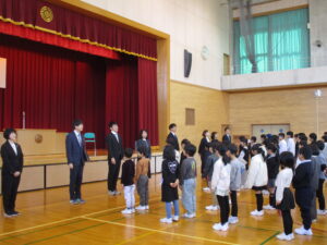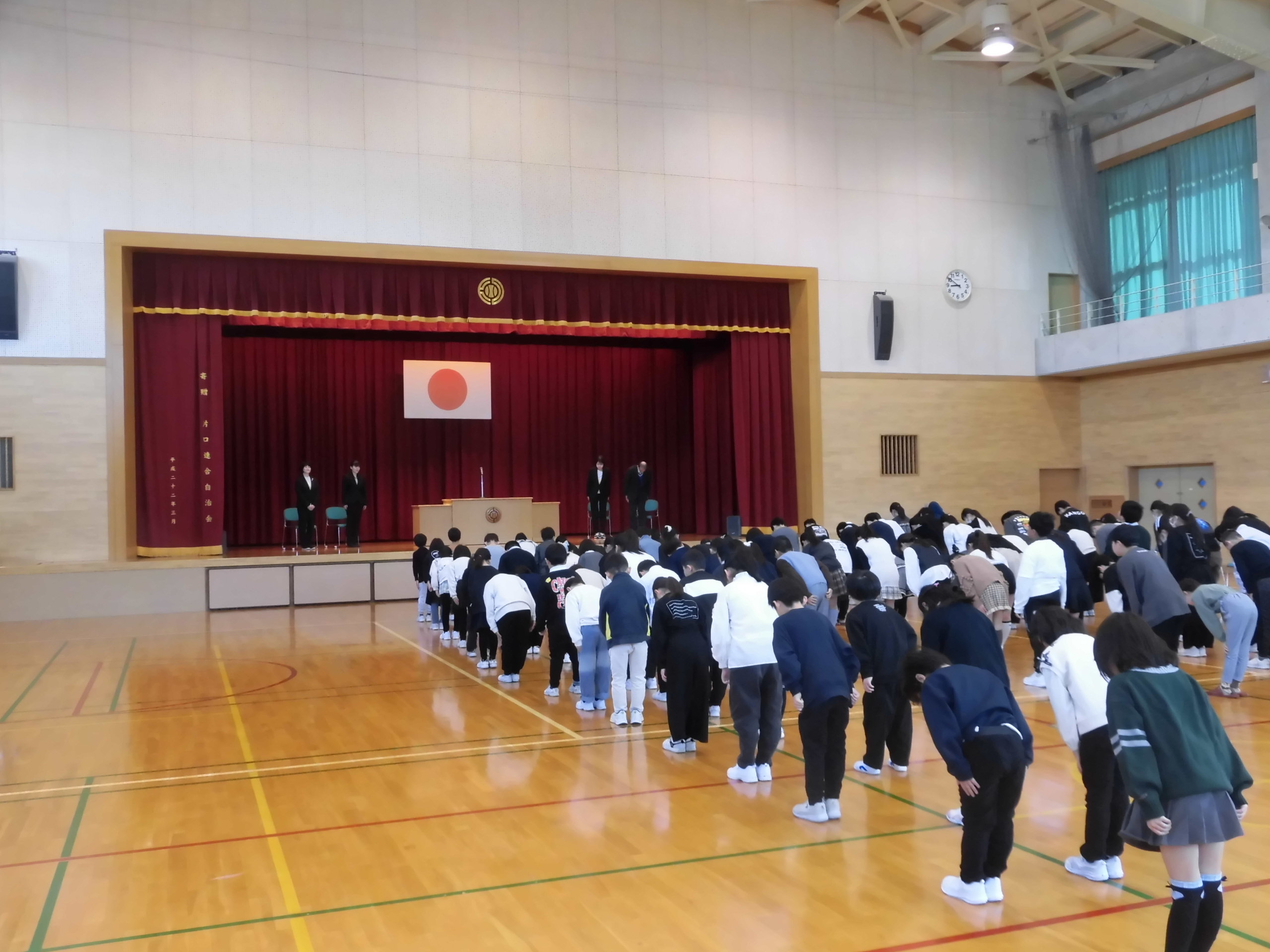 4月8日(水)着任式や新任式で校長先生や新しい先生方をお迎えした後、令和8年度の始業式を行いました。校長先生からの、「考える」「つながる」「やりぬく」の3つのがんばることについて、子供たちは真剣に話を聞いていました。担任の先生の発表が発表され、新しい1年間に期待を膨らませていました。